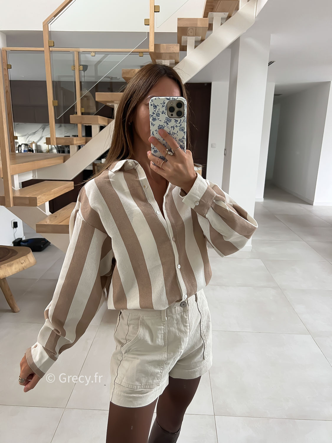 Les caractéristiques de notre chemise coton rayures beige à shopper